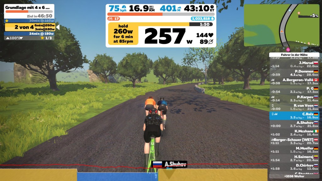 Mittlerweile gibt es mit Zwift eine Simulationsprogramm, was so gar nichts mehr mit stumpfem Training zu tun hat. Vorbei sind die Zeiten, in denen man gegen die Wand starrt oder sich einen Film anschaut.