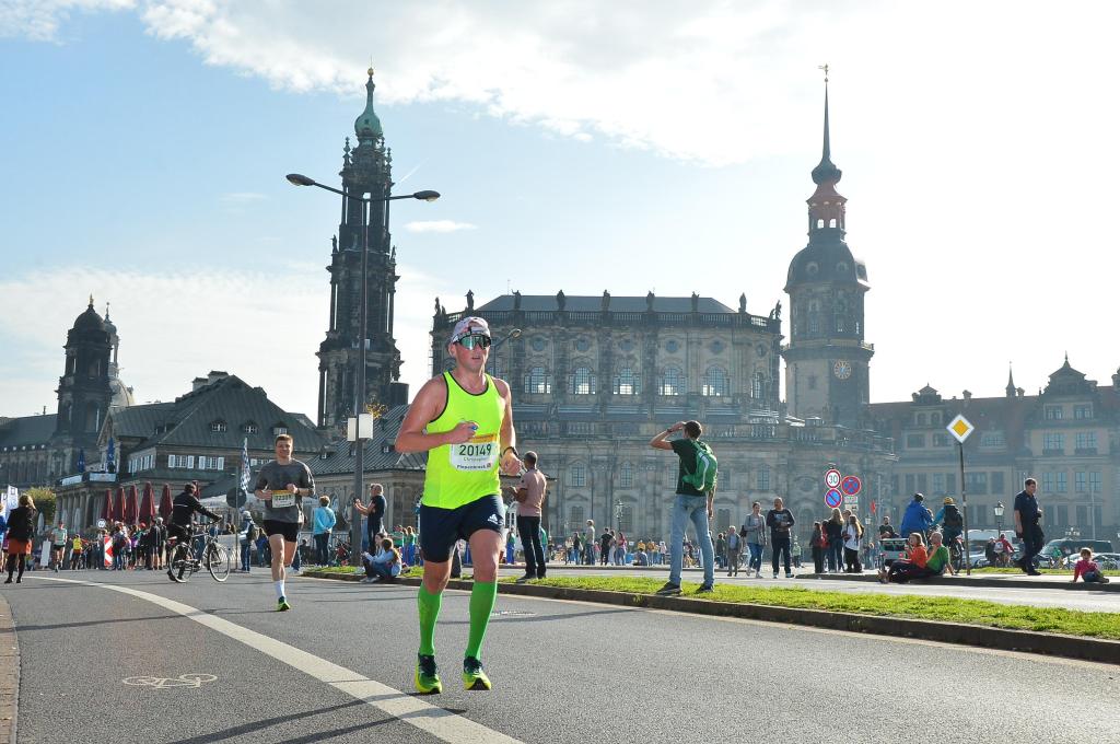 Das Wettkampfwochenende in Dresden wurde nochmal sommerlich warm. Was für die Allermeisten nochmal richtig schön war, sollte sich für mich als unüberwindbarer Drehzahlbegrenzer während des Wettkampfs erweisen. Trotz Kühlstrategie, die die Meisten wahrscheinlich nur im Hochsommer anwenden, spürte ich schon früh, dass es alles andere als selbstverständlich werden würde die anvisierte Zielzeit von unter 1:29 Stunde zu erreichen. Bereits nach ca. 6 km spiegelte das auch mein Puls wider, der zu diesem Zeitpunkt schon zu hoch war. Mental wollte ich mich aber den Widerständen nicht beugen. Für mich gab es nur ein Ziel: Entweder Bestzeit oder „Nichts“. So kam es, dass ich dann ungefähr bei km 12-13 einen regelrechten Motorplatzer hatte. Nach 1-2 Kilometer mentaler Resignation rief ich mir ins Bewusstsein, dass es keinen Grund gibt das Rennen zu beenden. Ich mache das, weil ich es liebe. Viele LäuferInnen wären mit so einer Leistung überglücklich und es wäre respektlos nur wegen eines „schlechten“ Tages das Rennen vorzeitig zu beenden. So lief ich den Lauf kontrolliert an der Grenze der noch maximal möglichen Geschwindigkeit zu Ende und finishe in 1:36 Std. Das ist immerhin meine drittschnellste Zeit über diese Distanz. Außerdem war es mein 23. Halbmarathon. (Wettkämpfe wie z.B. Triathlon-Mitteldistanzen oder Hindernisläufe nicht inkl.)